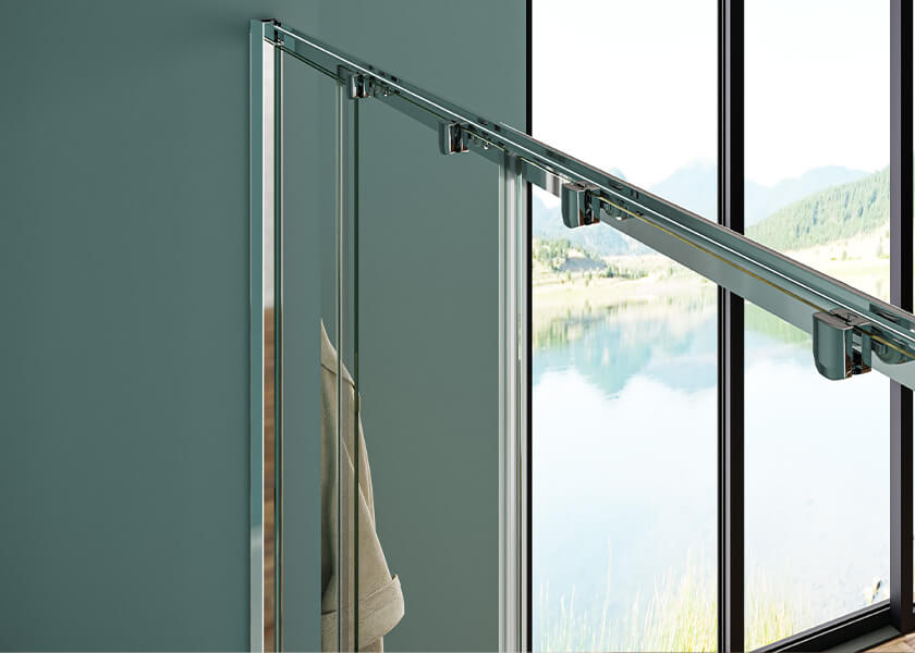 Scegli tra vetri trasparenti, satinati o con fasce, profili colorati e maniglie di design.